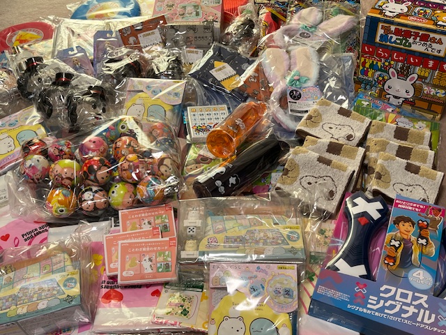 毎年、八王子のおもちゃ問屋までビンゴのプレゼントを買いに行きます。「幼稚園生にはこれがいいかな~?」「小学生になったら、これかな~?」「高学年は文房具がいいかな~?」など、子ども達を思い浮かべながらプレゼントを選ぶ楽しみは、私にとって格別です(笑)車の中はプレゼントでいっぱい。